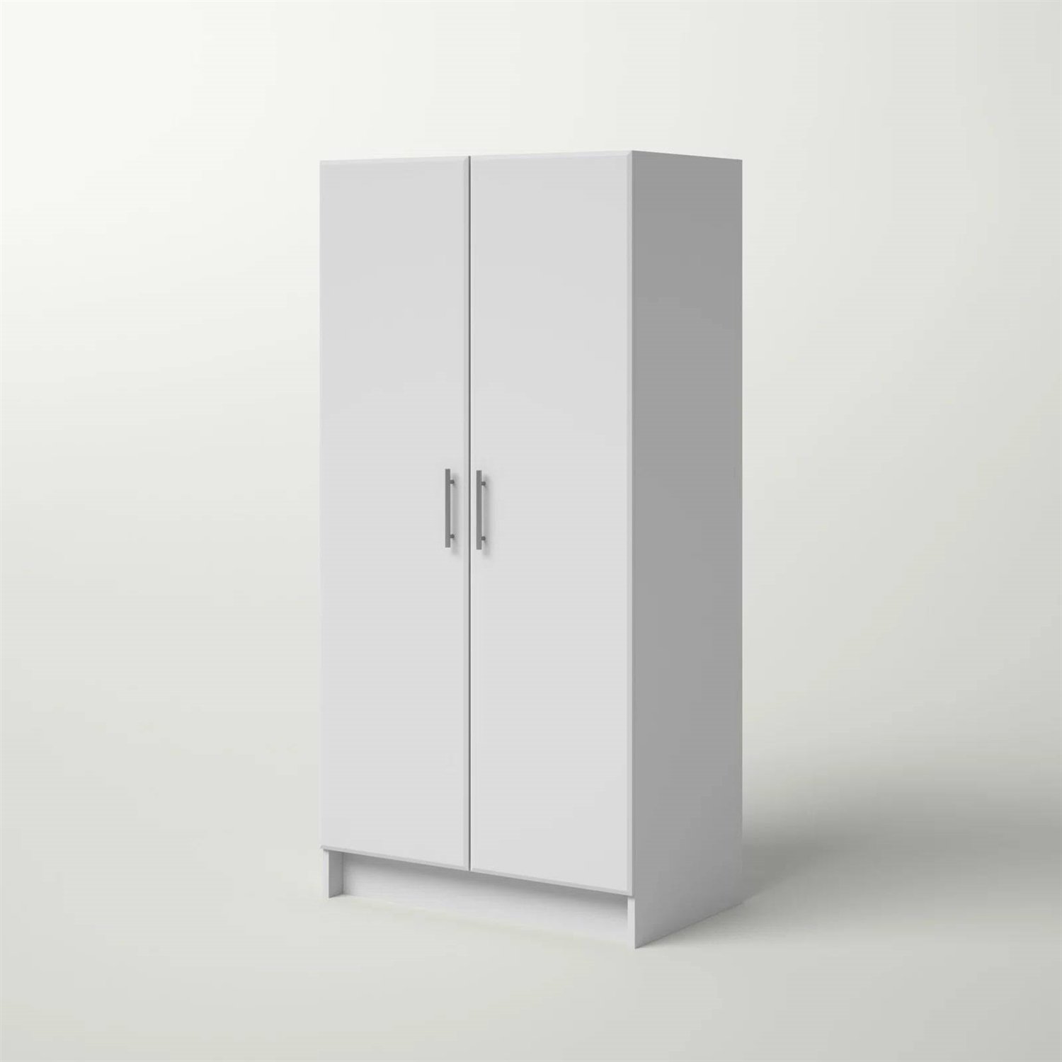 Bedroom Armoire Wardrobe Cabinet with Hanging Rail in White Wood Finish