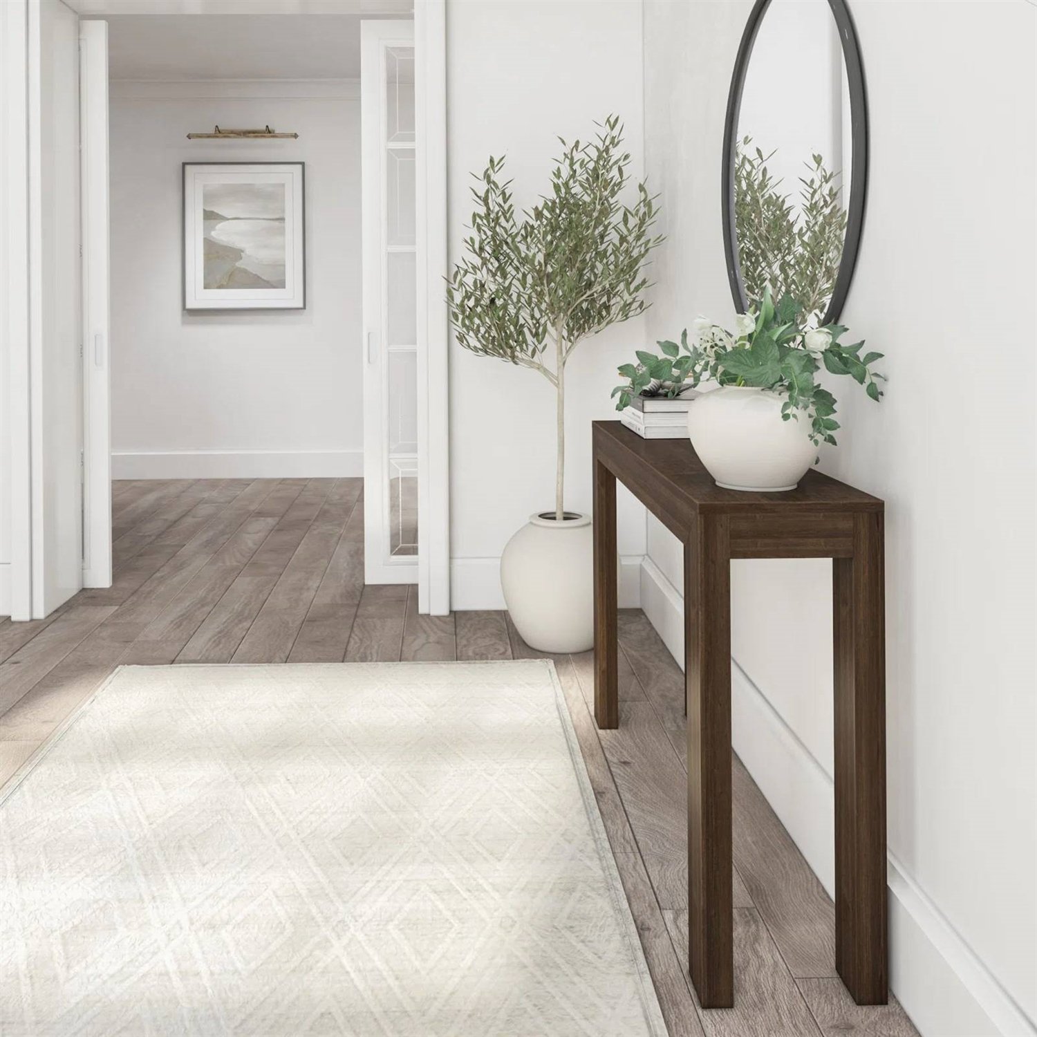 Solid Wood Modern Accent Console Table / Sofa Table in Dark Brown Walnut Finish