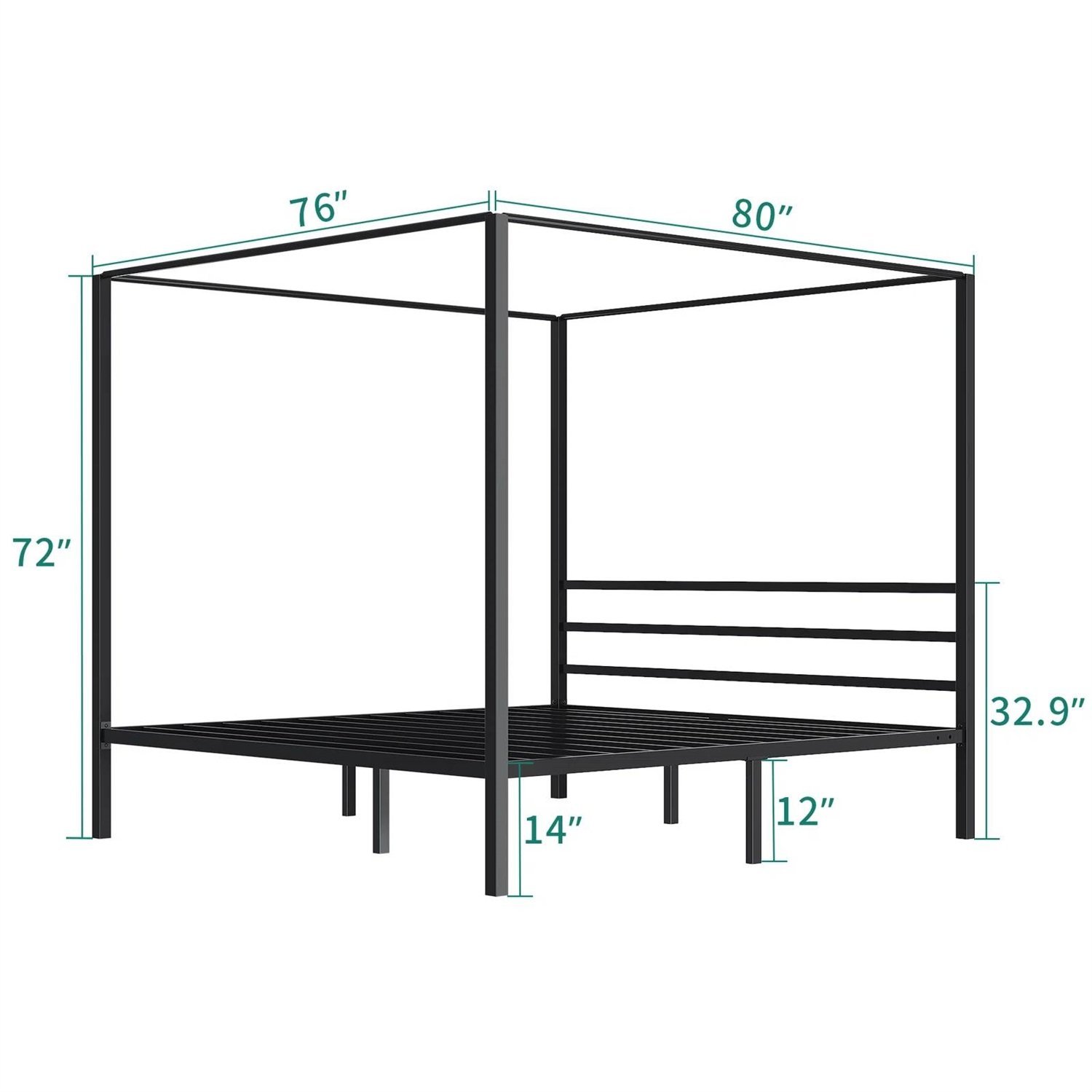 King size Modern Four Poster Metal Canopy Bed in Black Finish