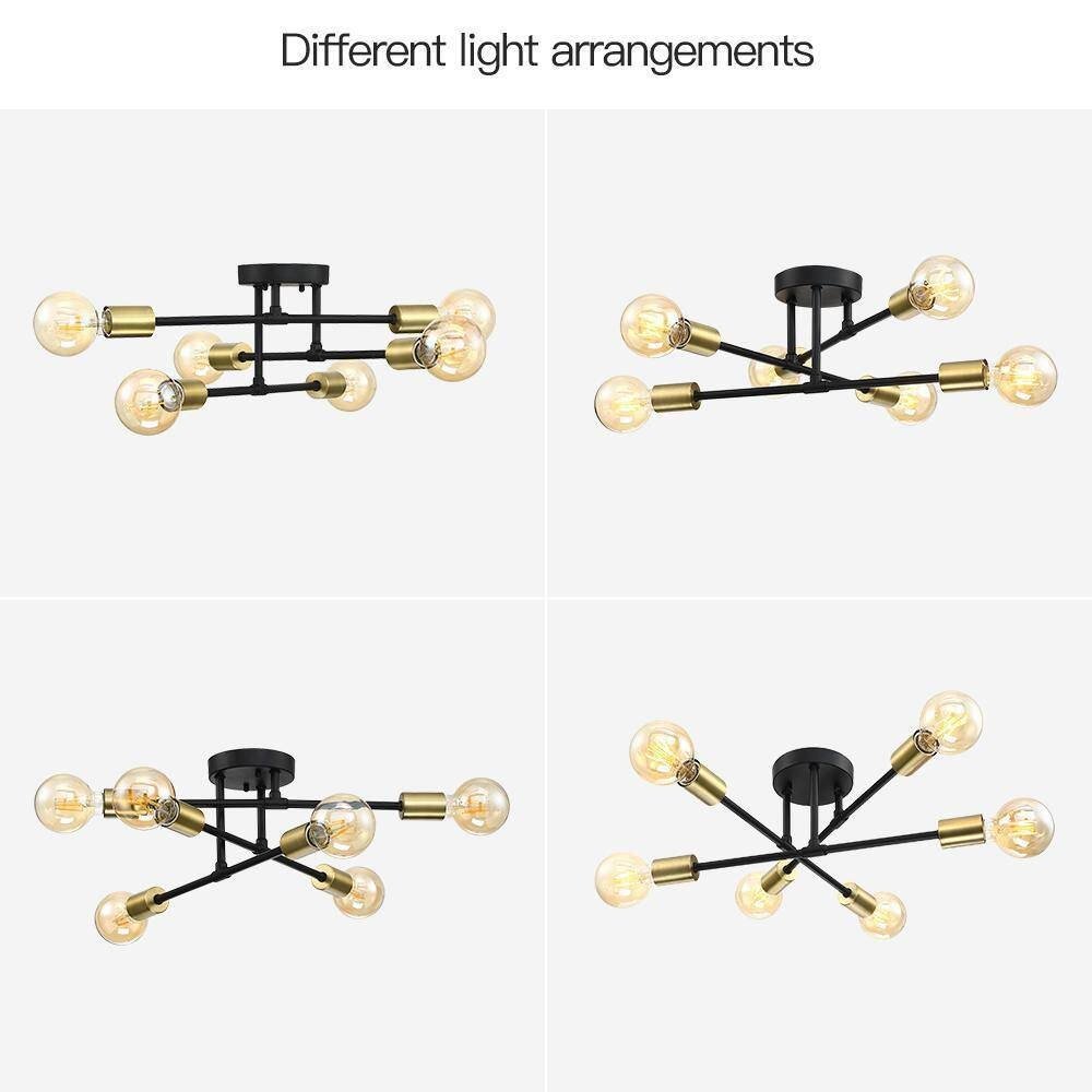 Mid-Century Sputnik Style 6-Light Black Gold Ceiling Light - Semi Flush Mount