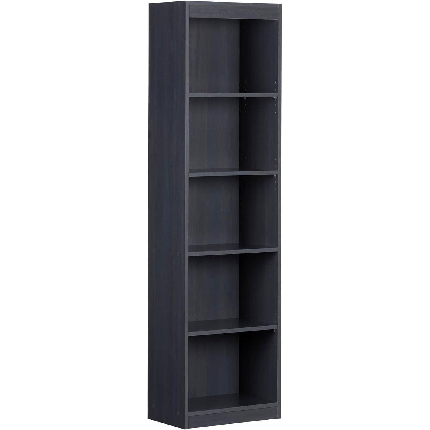 Narrow 5-Shelf Bookcase Slim Storage Shelving Unit Dark Blue Black Wood Finish