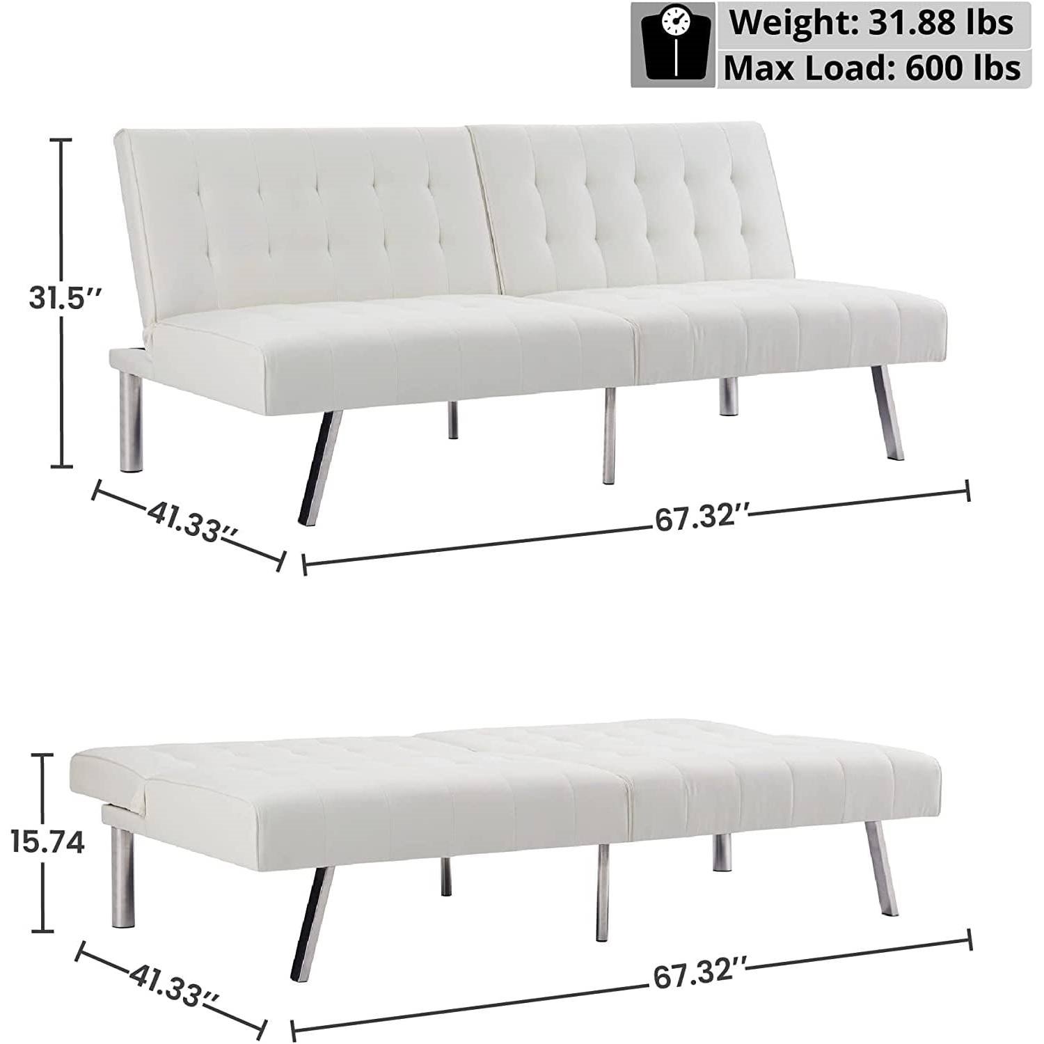 Mid-Century Modern Split Back Futon Sleep Sofa Bed in White Faux Leather Mid-Century Modern Split Back Futon Sleep Sofa Bed in White Faux Leather Mid-Century Modern Split Back Futon Sleep Sofa Bed in White Faux Leather Mid-Century Modern Split Back Futon Sleep Sofa Bed in White Faux Leather