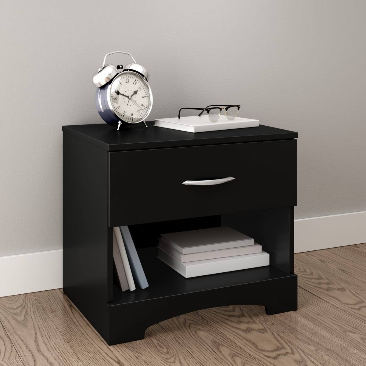 Modern 1 Drawer Nightstand End Side Table Storage in Black