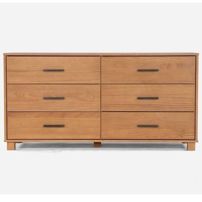 Modern Farmhouse Solid Wood 6 Drawer Double Dresser in Light Brown Finish