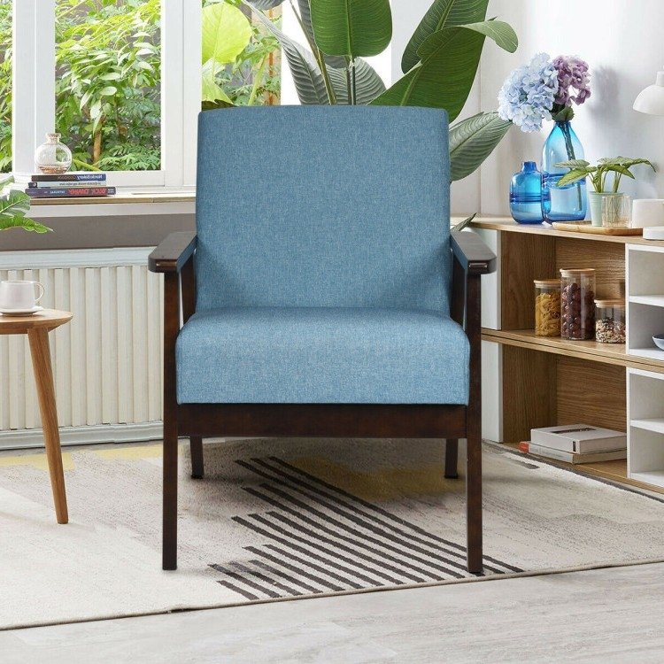 Home > Retro Modern Classic Blue Linen Wide Accent Chair with Espresso Wood Frame