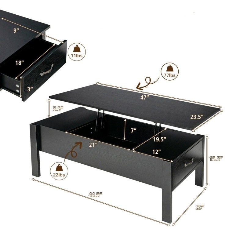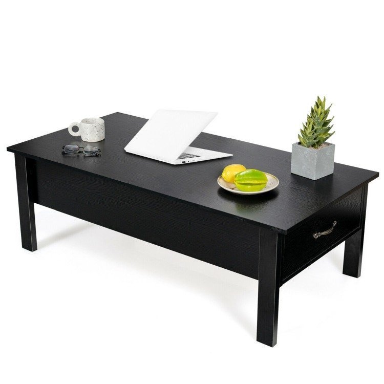 Modern Black Wooden Lift Top Coffee Table with 2 Side Drawers
