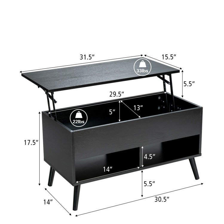 Mid-Century Lift-Top Coffee Table Sofa Laptop Desk in Black Wood Finish