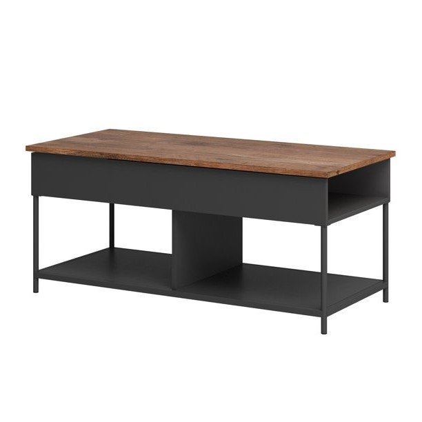 Farmhouse Black Metal Wood Lift-Top Multi Purpose Coffee Table