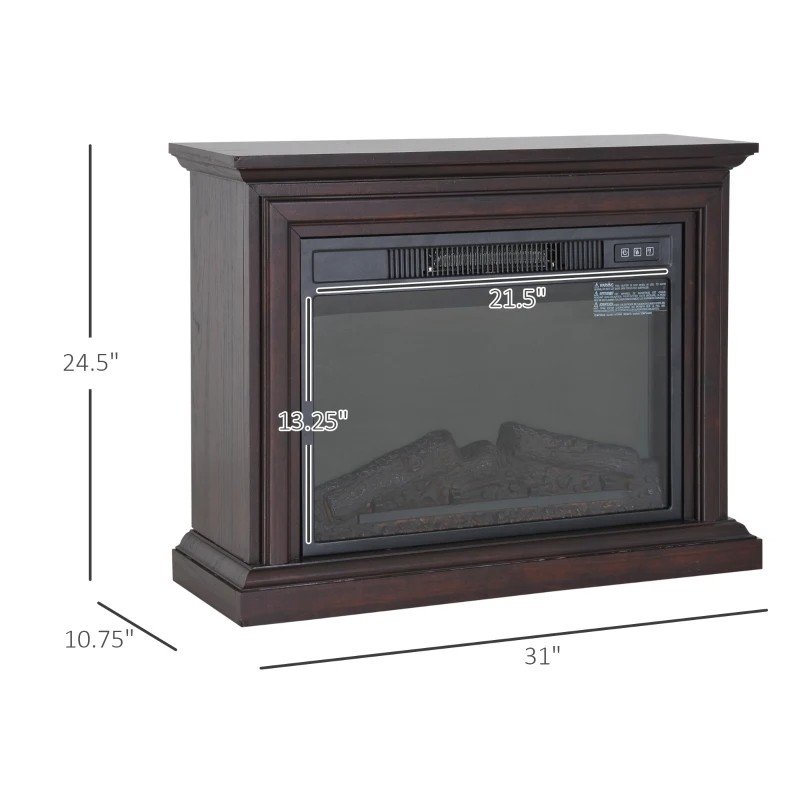 31 inch Dark Brown Electric Fireplace Heater Dimmable Flame Effect and Mantel w/ Remote Control