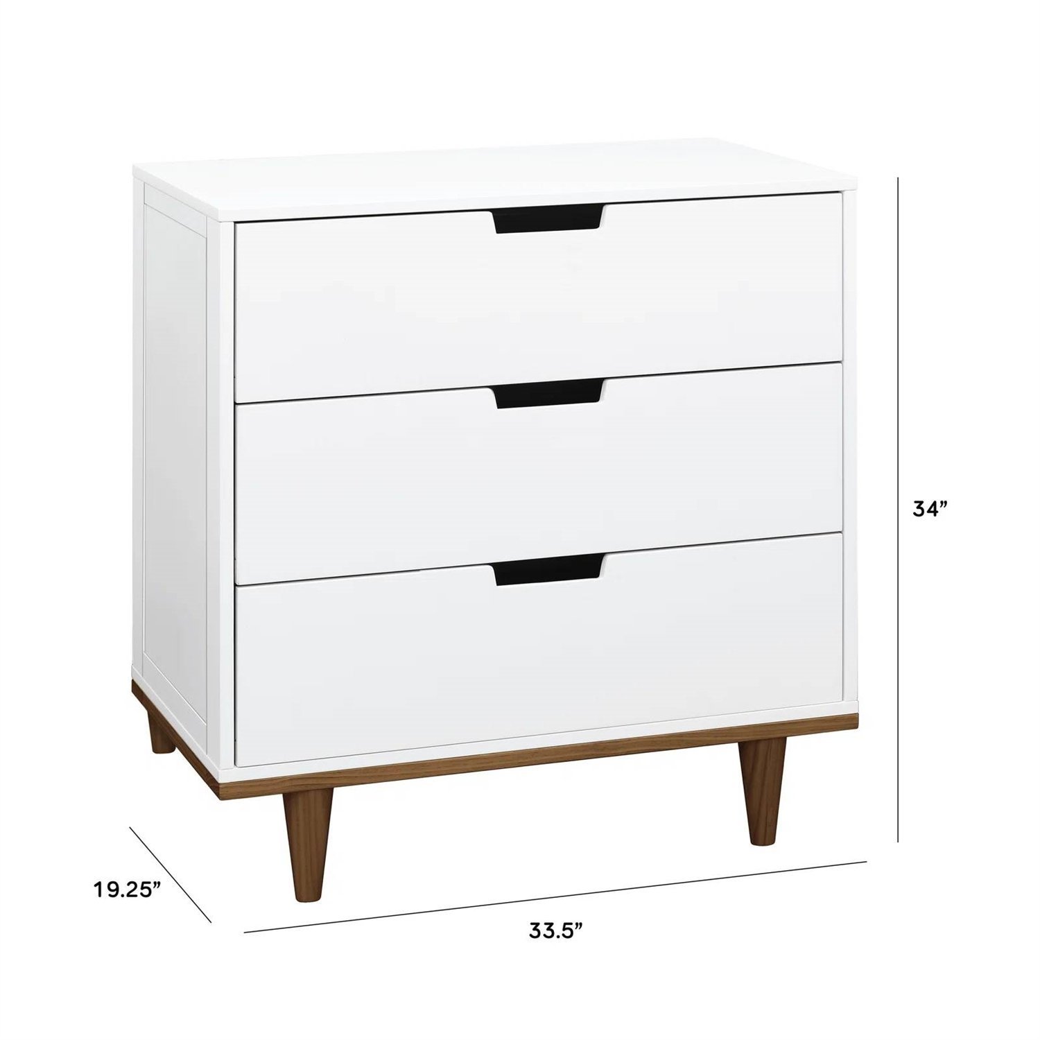 Modern Mid-Century Style 3-Drawer Dresser Chest in White Walnut Wood Finish