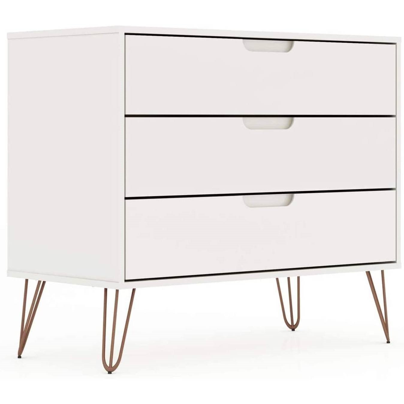 Modern Scandinavian Style Bedroom 3-Drawer Dresser in White Wood Finish