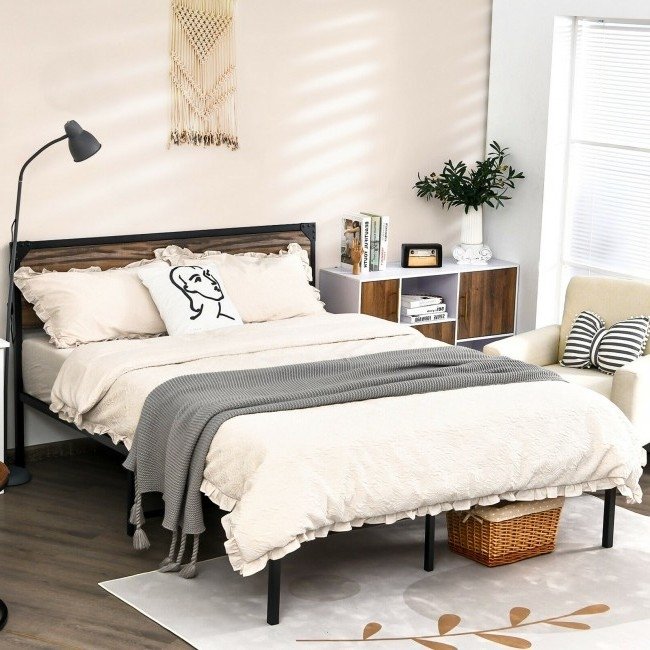 Rustic FarmHome Metal Wood Platform Bed Frame in Full Size
