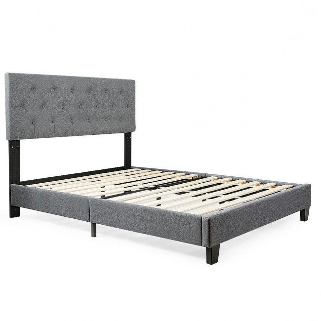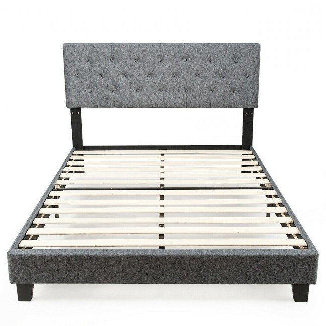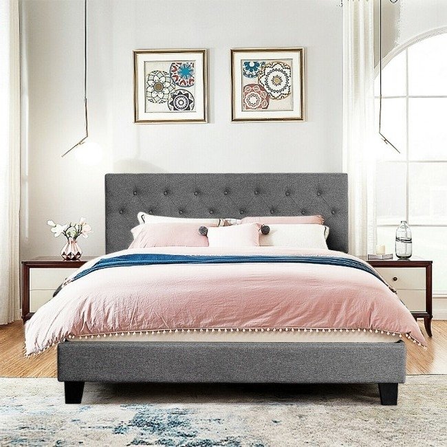 Home > Queen Size Grey Linen Upholstered Platform Bed