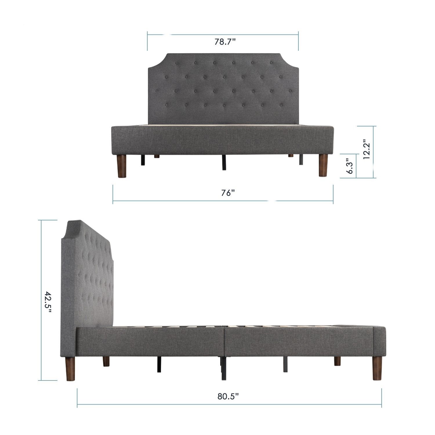 King size Upholstered Platform Bed with Grey Fabric Tufted Linen Headboard