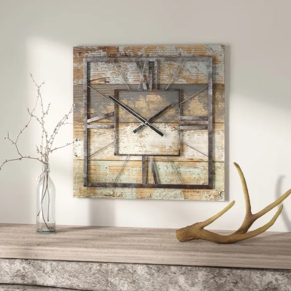 Square 27.5-inch Wood and Metal Wall Clock Industrial Style Square 27.5-inch Wood and Metal Wall Clock Industrial Style Square 27.5-inch Wood and Metal Wall Clock Industrial Style Square 27.5-inch Wood and Metal Wall Clock Industrial Style