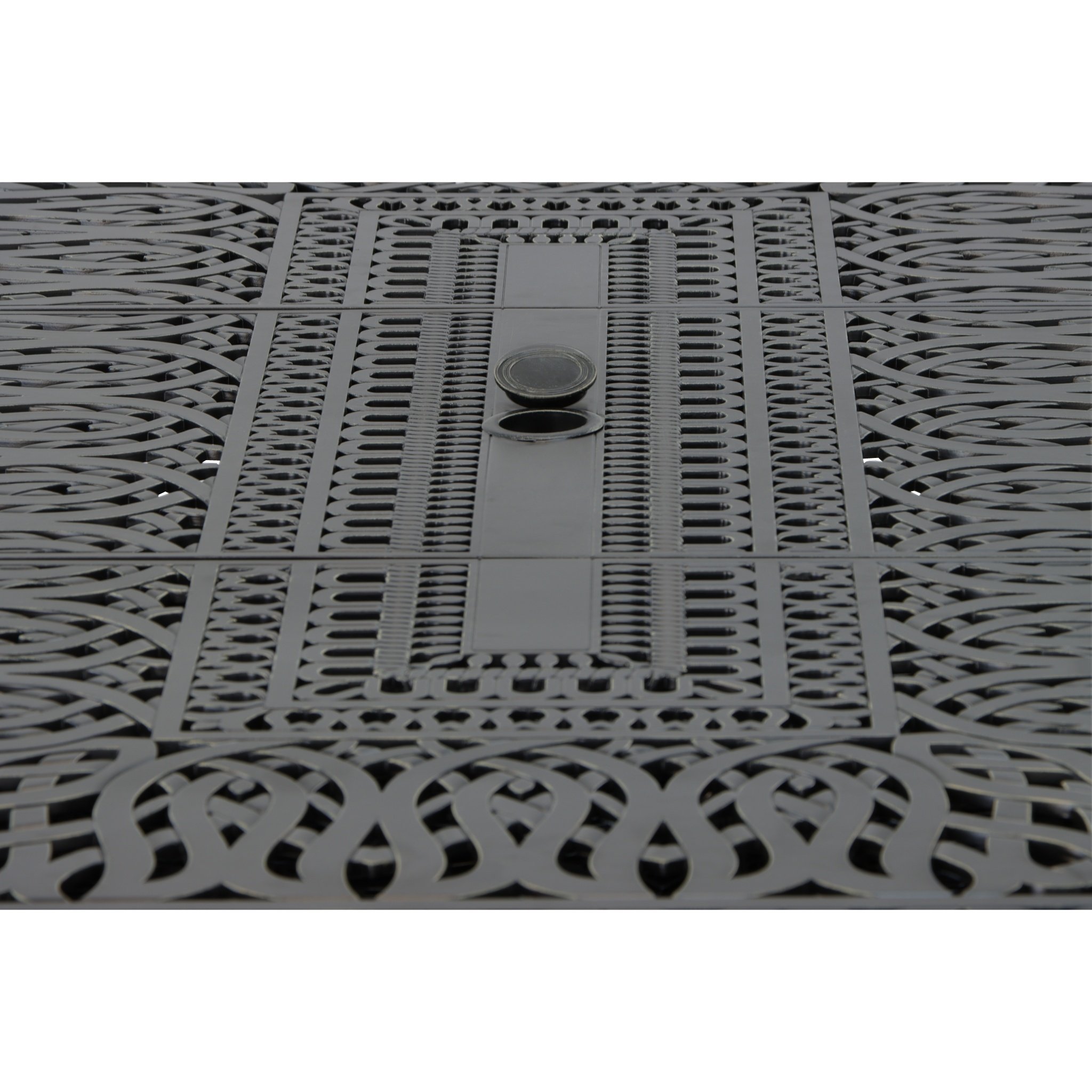 The Elisabeth Extension Table with Self-Storing Leaves exemplifies outdoor dining luxury by Bridgeton Moore. Crafted for spaces requiring ample room and versatility, this table offers unmatched flexibility. Featuring two independently operating butterfly leaves, it smoothly transitions from a generous 84 inches (7 feet) with no leaves open to an expansive 108 or an impressive 132 inches when fully extended, accommodating up to 10 adults with ease. Experience the convenience of our exclusive butterfly mechanism, allowing the leaves to seamlessly store away under the table with unparalleled smoothness and efficiency. Cast in aluminum, this table ensures durability and resistance to rust. Its elegant Ebony tone finish, embellished with soft silver-toned dry brushed accents, lends a touch of sophistication to any outdoor setting. Pair this exquisite table with our matching chairs for a cohesive outdoor dining ensemble. Consider enhancing your outdoor dining experience by complementing it with the Elisabeth dining chairs. The extension tables powder-coated finish provides protection against scratches and peeling, while covers are recommended for year-round outdoor exposure. Regular cleaning of the furniture surface to remove debris will further safeguard the finish, ensuring lasting beauty and enjoyment. Experience the perfect blend of functionality, elegance, and comfort, creating unforgettable moments with family and friends.