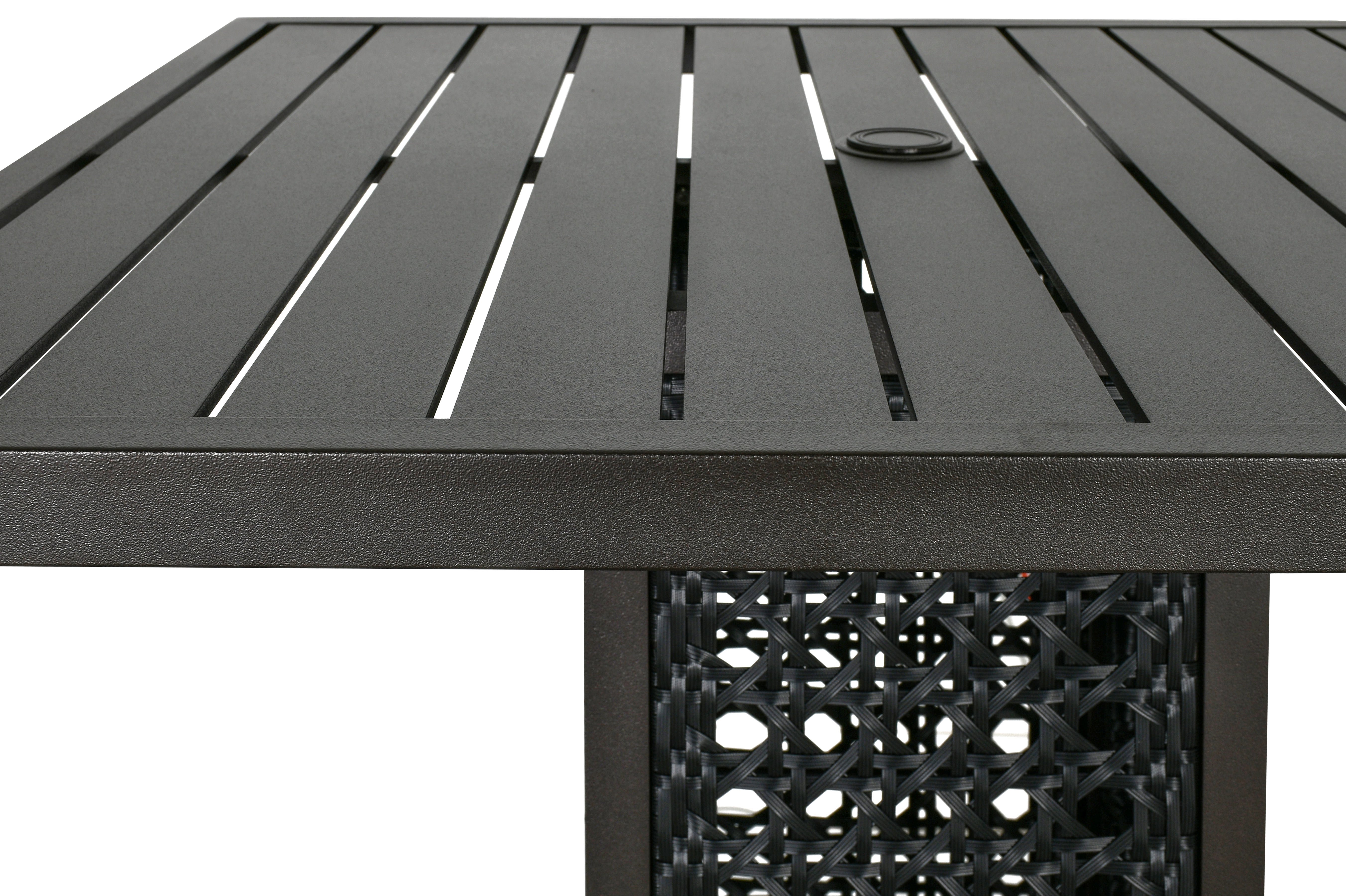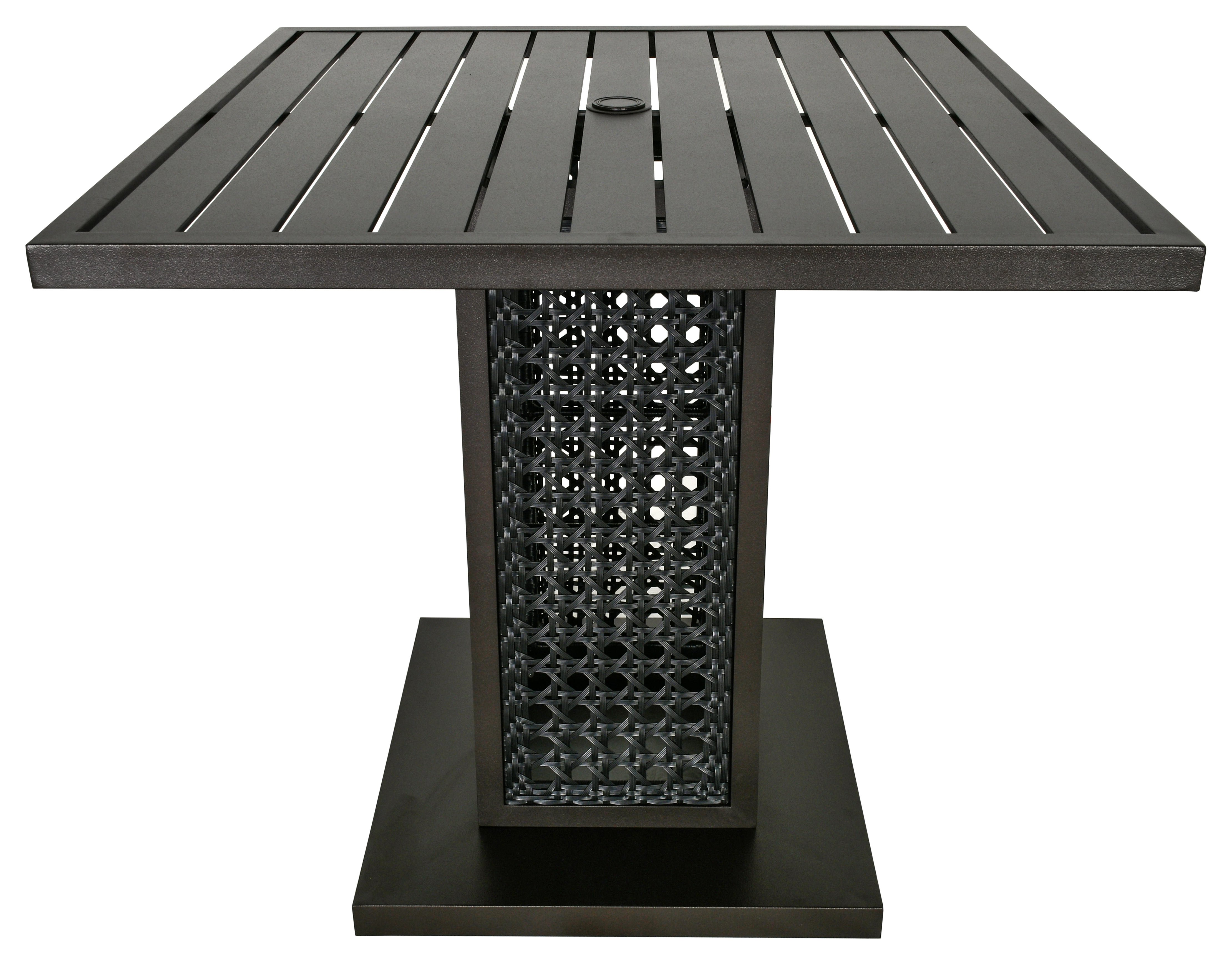 The outdoor Monterey Bar or Pub Table from the Monterey Collection is a stylish addition to any outdoor space. With dimensions of 42 inches square by 39 inches tall, this table is perfect for outdoor gatherings, whether in commercial venues or for private outdoor parties. Sold separately, this table offers versatility in creating inviting outdoor entertainment areas. For a complete outdoor Pub Table Set, it can be paired with the matching Monterey Swivel Bar Stools, enhancing the ambiance of your outdoor space. Designed with the elegance of interior furniture in mind, the Monterey Collection is crafted to withstand outdoor conditions, ensuring longevity and durability. Accentuated by hand-woven UV and Split Resistant Poly weave. The poly weave construction accommodates expansion and contraction in various climates, preventing cracking and splitting. The Monterey Collection offers a variety of patio furniture to complete any outdoor project, from dining to seating arrangements. Backed by Bridgeton Moore's commitment to quality, the Monterey Dining Table comes with an industry-leading warranty of 3 years on all frames and finishes under normal conditions. For year-round outdoor exposure, we recommend using covers and regularly cleaning the furniture surface to protect the finish. Experience the perfect blend of functionality, elegance, and comfort, creating unforgettable moments with family and friends in your outdoor oasis.