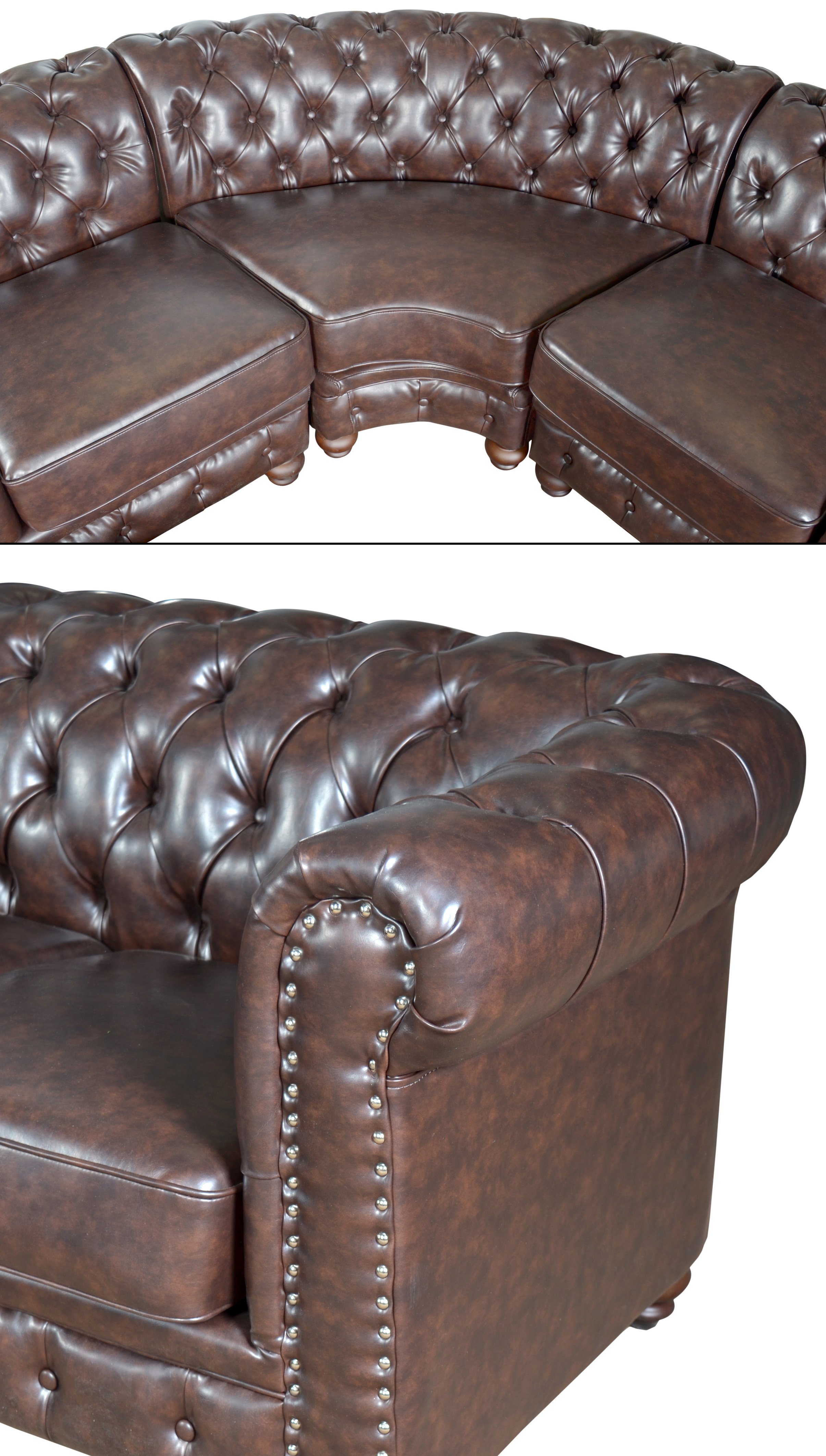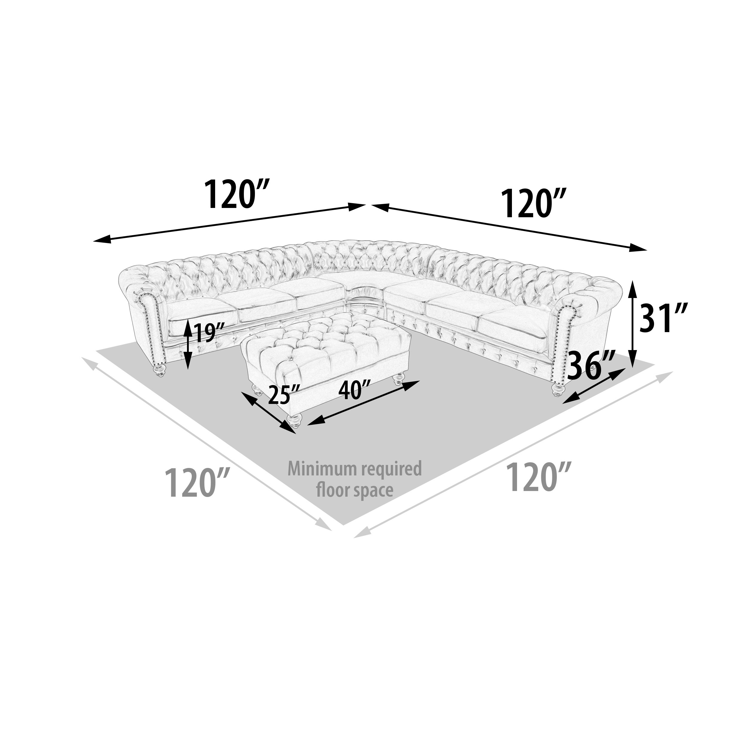 Classic Chesterfield Brown Sectional with Ottoman (KIT)