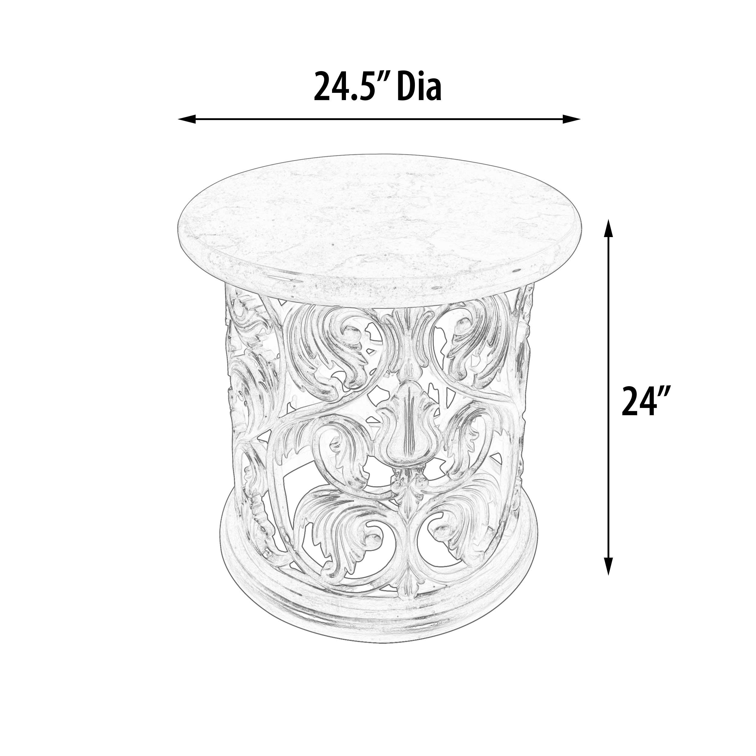 The Platine Hand Carved Round Side Table w Crema Marble 24 Inches Tall is completely Hand Carved from solid Mahogany. Hand Made and Hand Finished by the Master Carvers and Finishers of the Heritage company. Rare to find in this quality of workmanship. The Platine finish with hues of Champagne Golden Silver is equally spectacular, a multi step process of actually silver leafing the frames and layering and finishing techniques. The imported Creama Marfil Top blends tastefully and balances this amazing finishing. While this Side Table is sold separately it is often purchased in pairs for balance and it matches beautifully with the Platine Hand Carved Coffee Table w Crema Marble 48 Inches Wide for a more complete design. The Platine Collection offers many wonderful options to expand your design, consider any of the Platine matching Upholstery and Occasional pieces from this top Quality Collection. All furniture is hand made and finished 1 piece at a time.