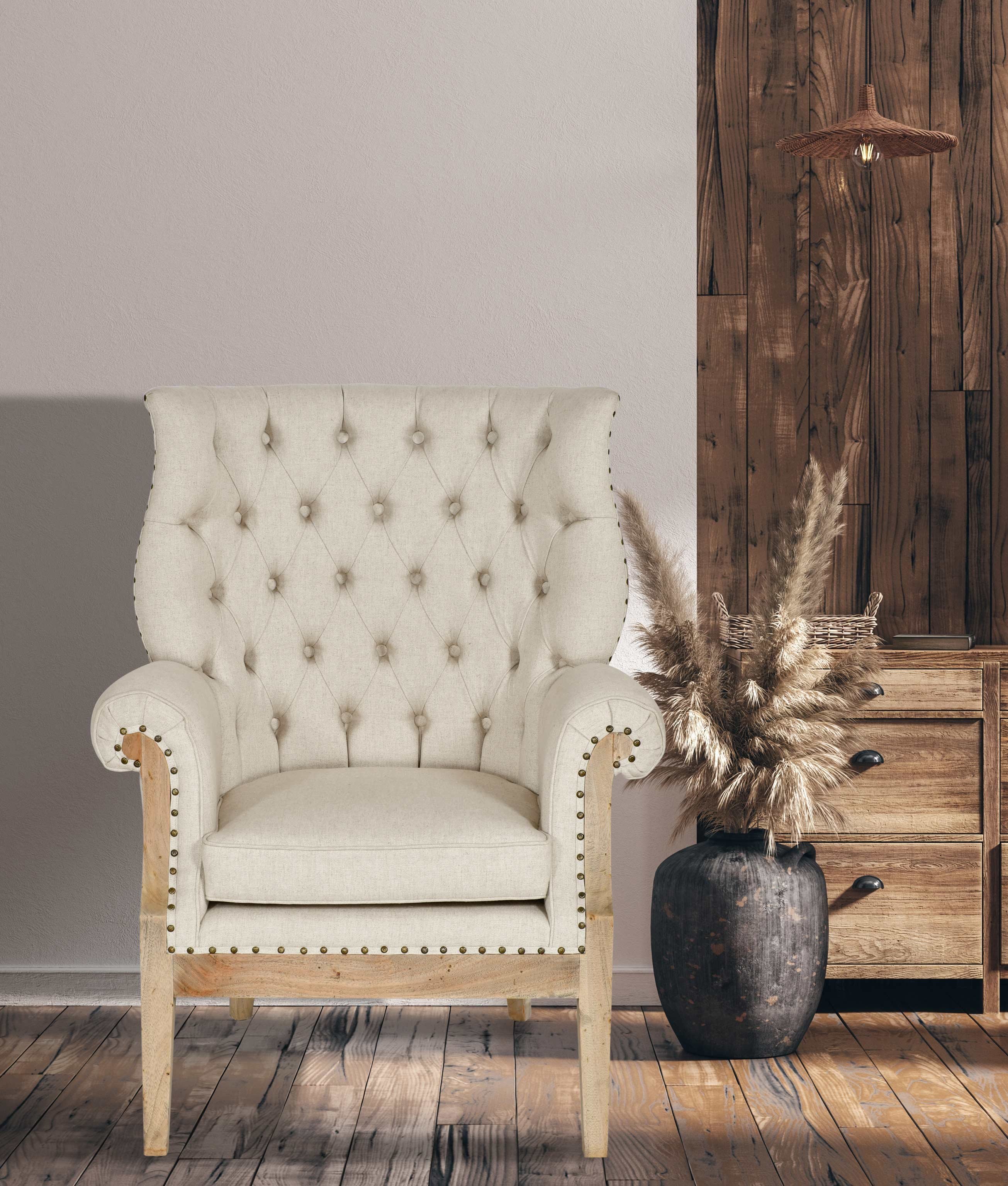 Introducing a very impressive Farmhouse Islander Arm Chair. It features a detailed back design combined beautifully with one of the hottest finishes in the market, a neutral or achromatic color. It features a neutral Linen woven in a heavier weight for longer-lasting quality.