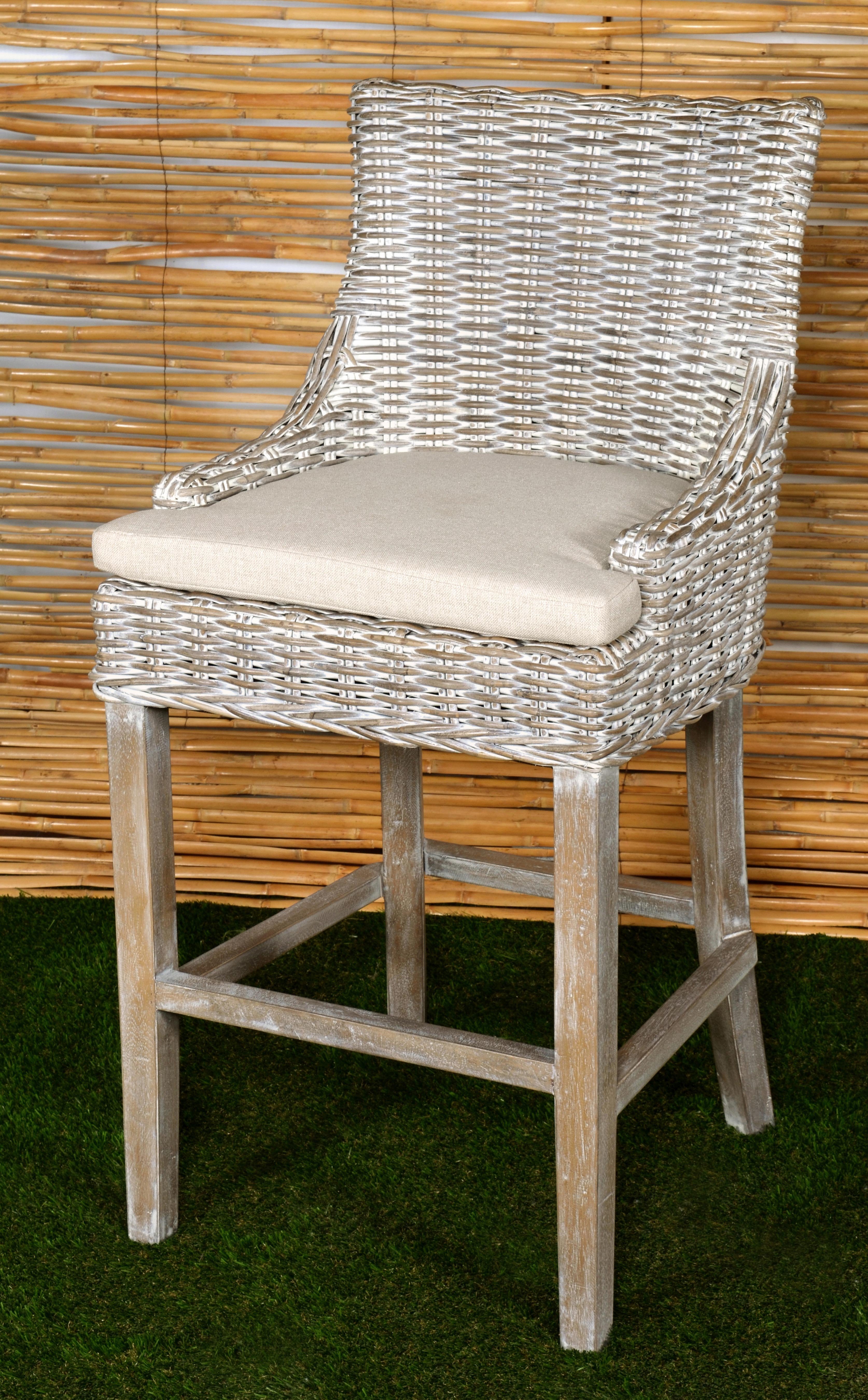 Original, Imported, hand woven Kuba Grey Weave Seating, a timeless design constructed to Last! Our Alfresco design bar height stool design white wash has the potential of solving many design challenges: Kuba bar stools and chairs have gorgeous natural colors and bring texture and interest into Interior spaces. These bar chairs work beautifully with almost any type of bar height table. These handwoven Kuba Stools are also chosen for their sturdy construction and will withstand use, for many years to come. They are Hand woven one seat at a time by skilled craftspeople. Manufactured to sit as comfortably as they are beautiful, the seats have been slightly widened and the backs of the chair are relaxed. You will like that the seat comes with a removable neutral cushion. The hand applied white wash finish, offering a softer tone for lighter interior requirements and works perfectly from Farmhouse to Coastal to Lighter Transitional. AFD Home ; Helping guide to selecting the right size chair for the right size table, counter or bar. Chair seat height describes the measure from the floor to the top of the chair's seat, table height is from floor to table surface top *The Prairie or Alfresco designed Dining Chairs have 18 Inch seats and are designed for a common 28 to 30 inch table top and almost all normal dining tables. *The Prairie or Alfresco designed Counter Stool Chair have 24 Inch seats and are designed for a common 36 to 38 inch kitchen counter or gathering height table, this counter height is standard to almost all applications. *The Prairie or Alfresco designed Bar Stool has a 28 Inch seat and is for normal conventional bar height counters or tables 40 to 42 Inches Tall. Thank You for considering the Alfresco Kuba White Wash Bar Stool by AFD Home, The Alfresco white wash series offers a matching dining chair and counter height chairs to complete a matching collection and if you prefer a darker finish consider the Prairie or Alfresco series in the dark wash finish. No Assembly Required. Please note these items are hand made from natural materials and stains are hand applied, these beautiful hand made seating solutions may naturally vary slightly.