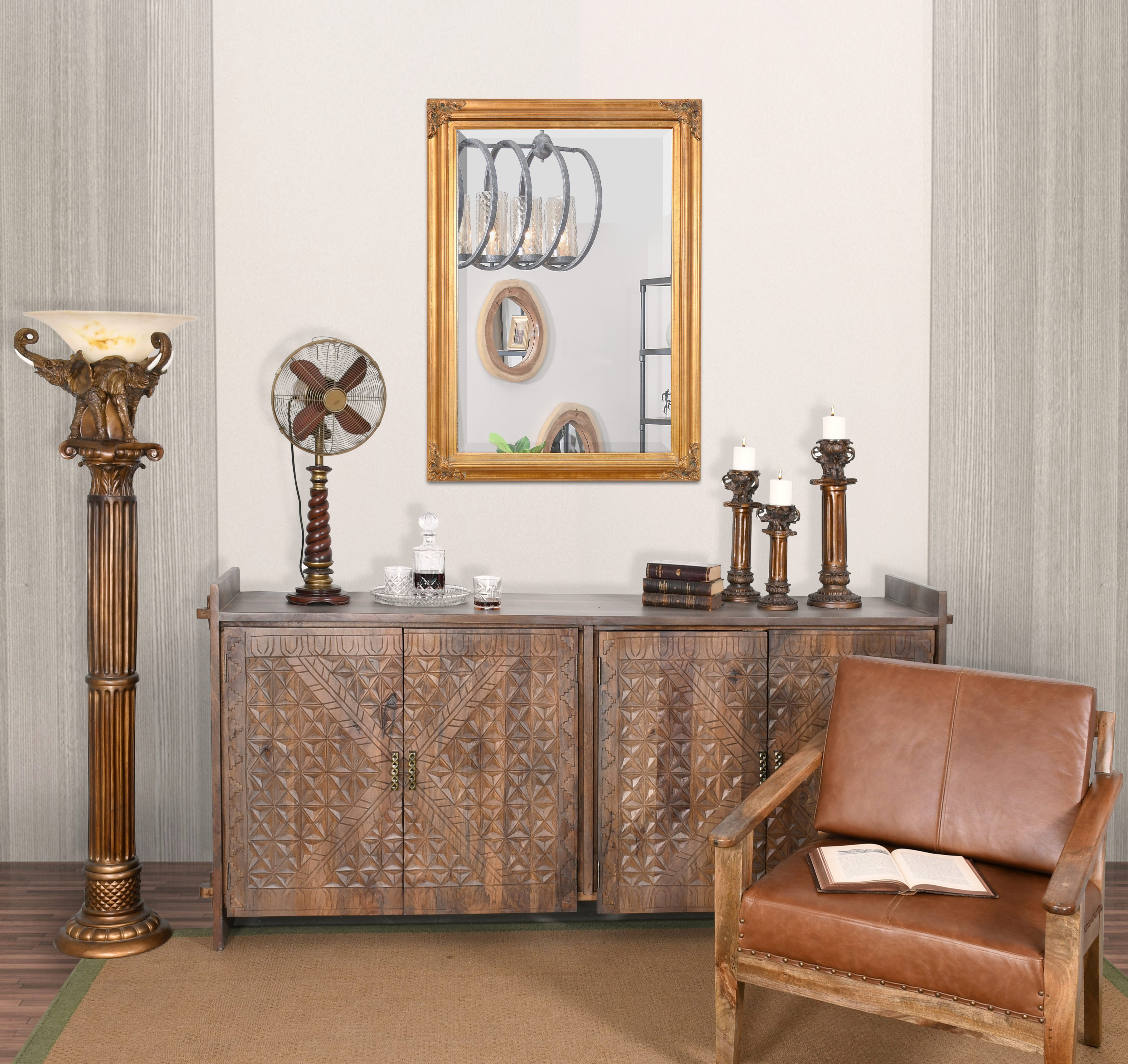 Add a stylish touch to your home with this Mini Grand Victorian Mirror 24X36 Antique Gold. The stylish rectangular wall mirror is set in a breathtaking gold frame. Mini Grand Victorian Mirror 24X36 Antique Gold will brighten and beautify your decor. This wall mirror with a traditional design that will add elegance to any plan. All mirrors are pre-fitted with heavy-duty hangers appropriate for the size and weight of the mirror
