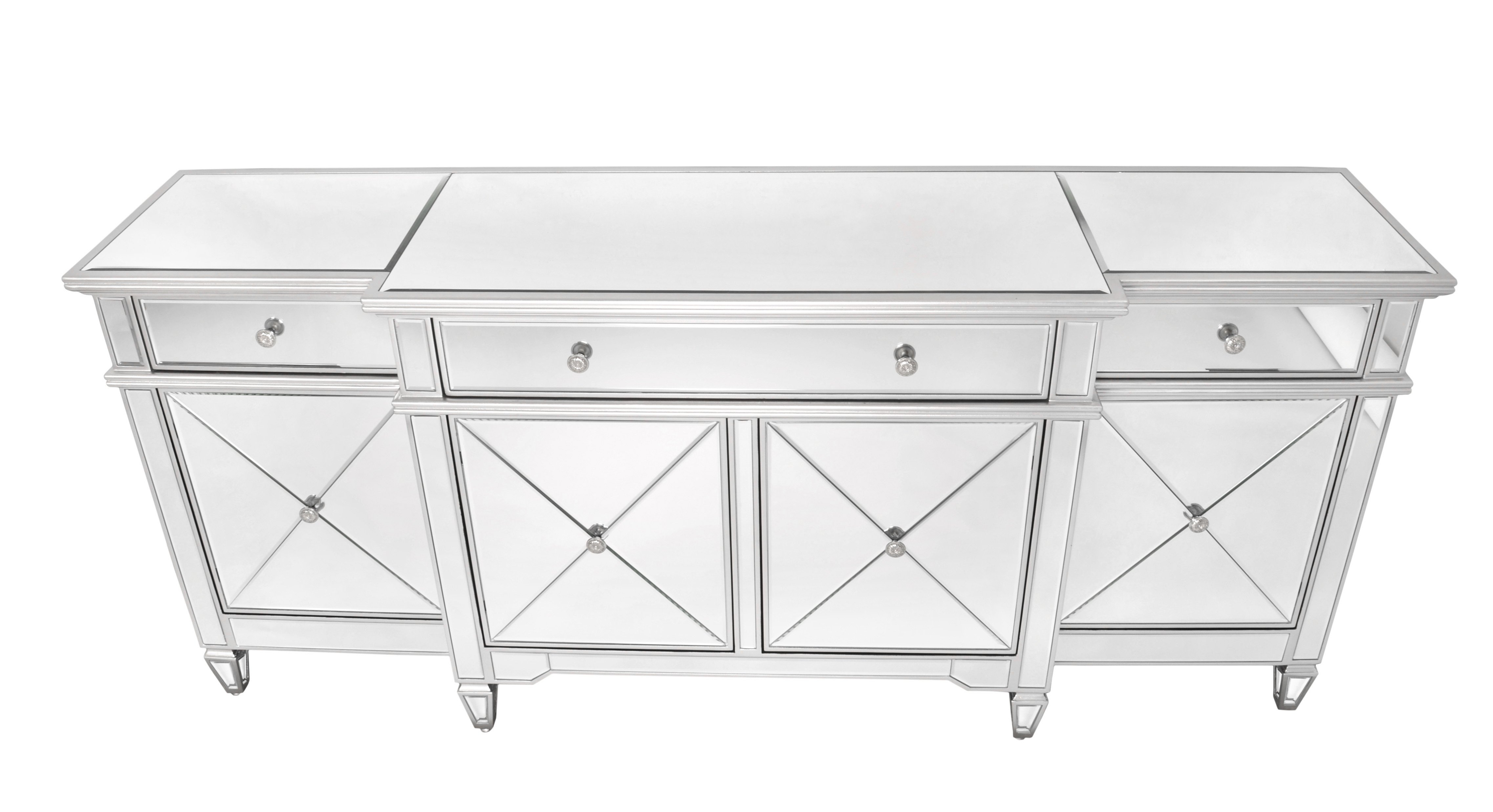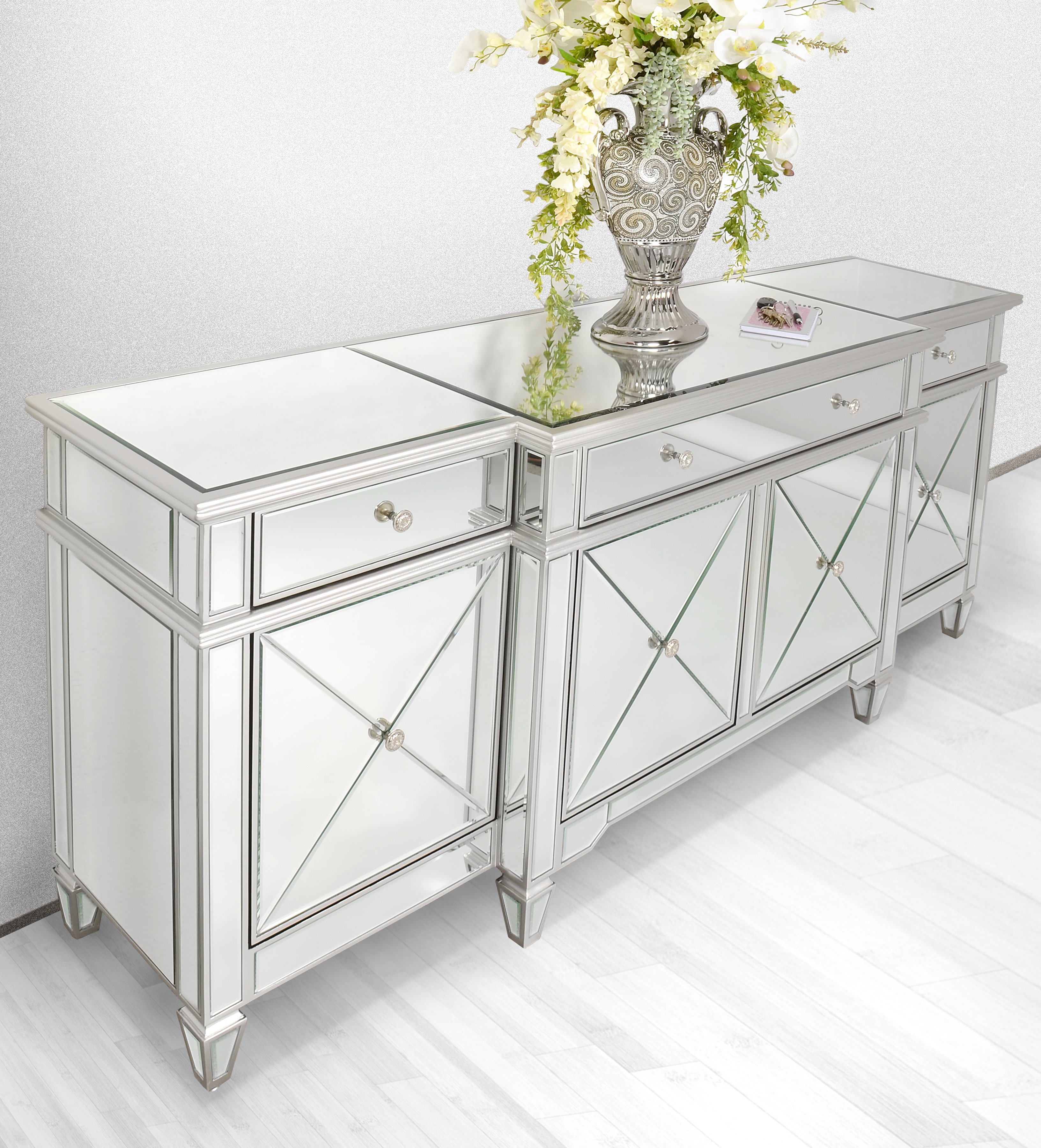 This credenza is surely INSTA-worthy! With beautiful beveled glass and silver gold finishing combined with storage this is an old Hollywood type of glamour that is perfect for the demands of todays design focused home owners.